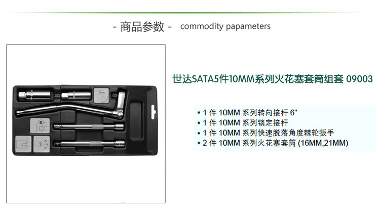 | 世达工具(SATA)套装 5件10MM系列火花塞套筒组套/09003 |