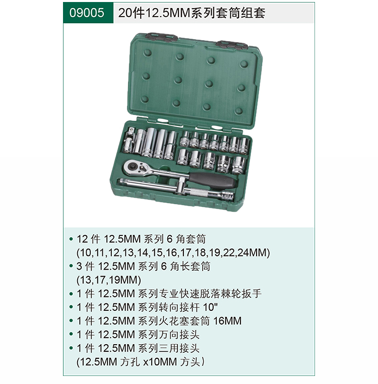>> 世达工具(SATA)20件12.5MM系列套筒组套 棘轮扳手 汽修汽保工具箱组合/09005