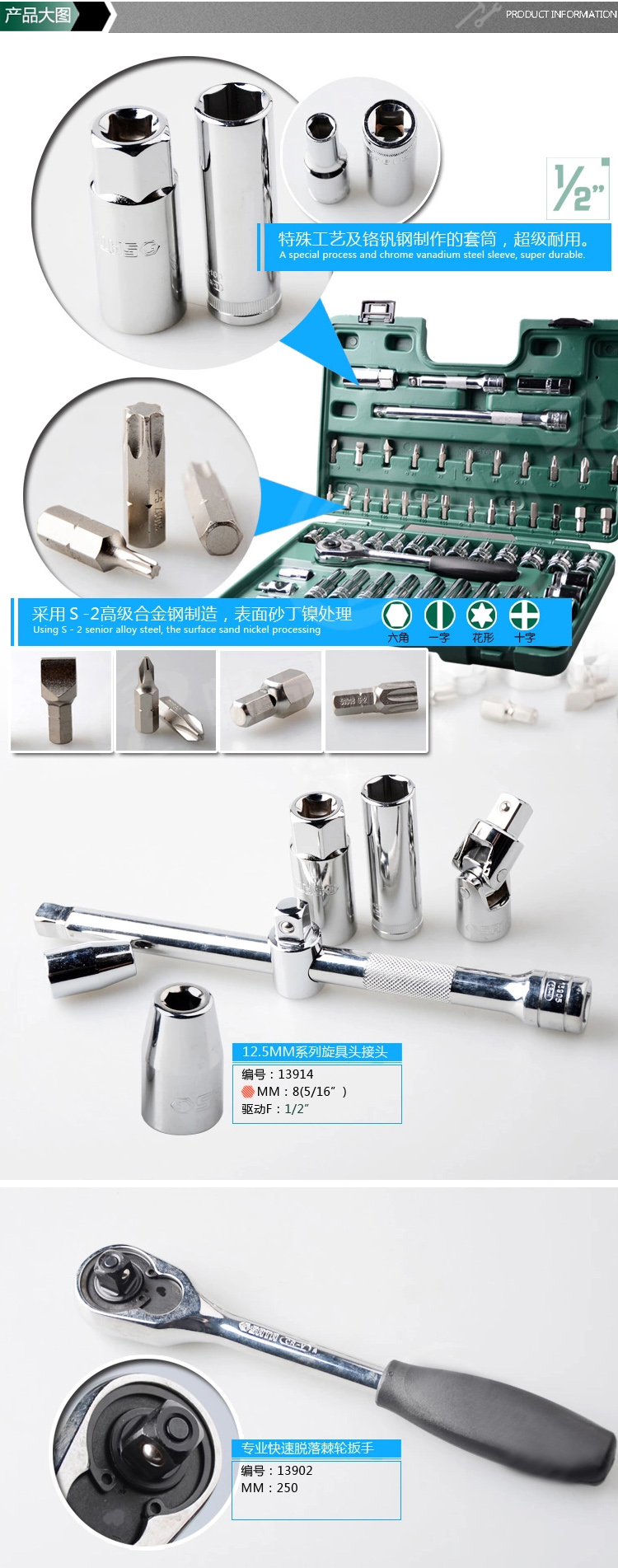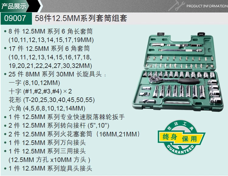 | 世达工具(SATA)公制套筒棘轮扳手组套58件汽修汽保工具套装12.5MM系列/09007 |