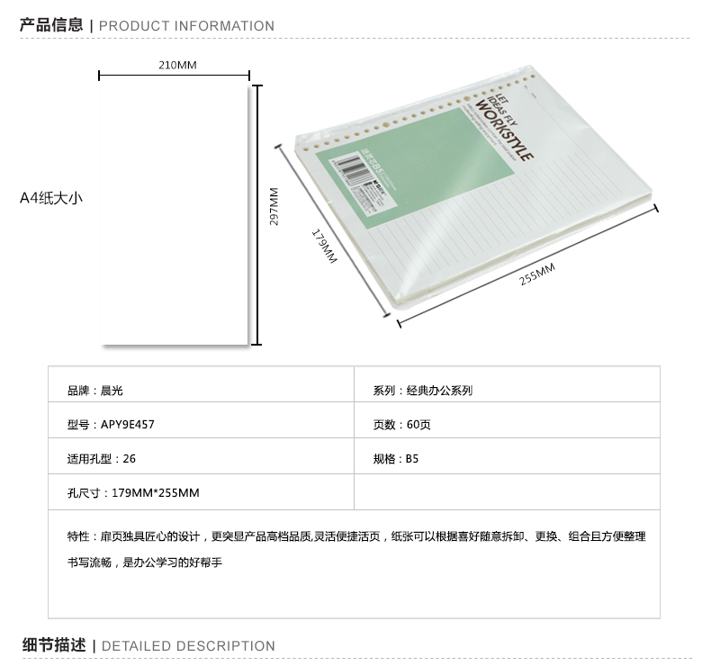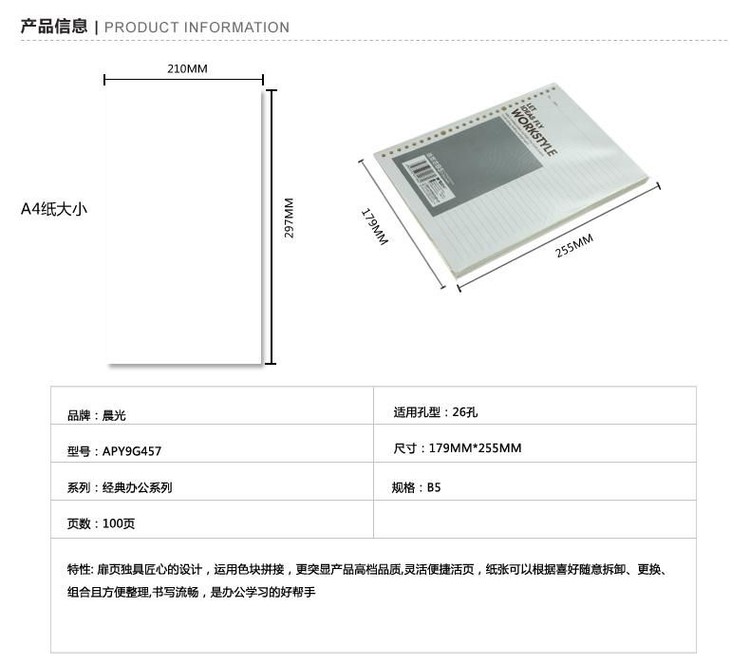 | 晨光APY9E457/APY9G457 26孔活页芯60页/100页经典办公笔记本 |