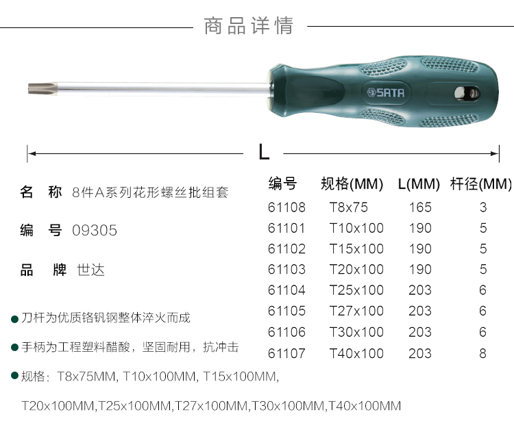 | 世达五金工具(SATA)8件套A系花形螺丝刀套装螺丝批/09305 |