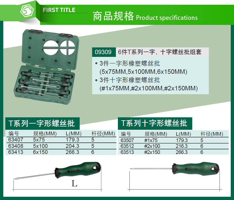 | 世达工具(SATA) 6件T系列一字、十字螺丝刀组套 /09309 |