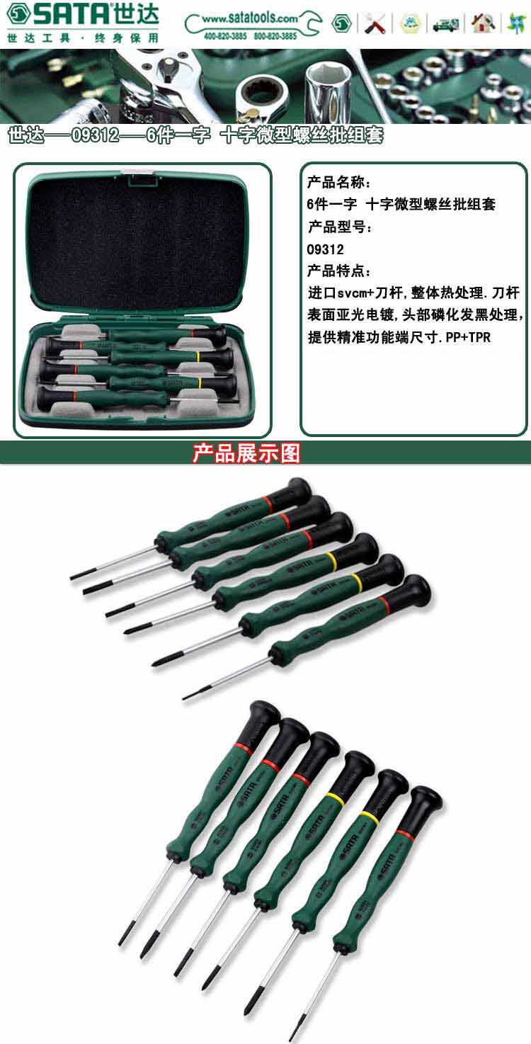 | 世达工具(SATA) 6件套一字、十字微型螺丝批/ 09312 |