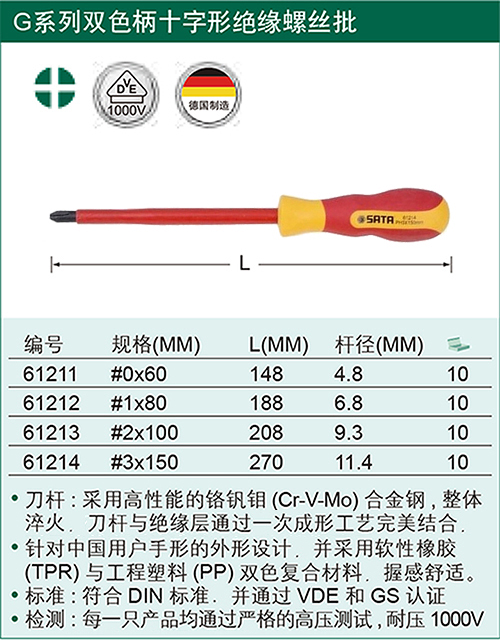 | 世达(SATA)专业级双色柄绝缘螺丝批 61211-61214 | |||