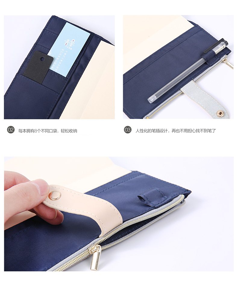人性化笔插设计,每本附8个不同口袋