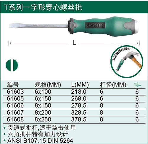 | 世达(SATA) 一字型穿心螺丝刀 61603-61608 |