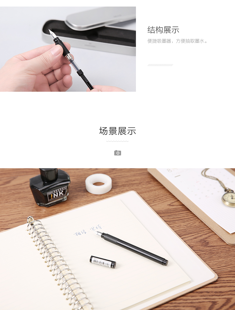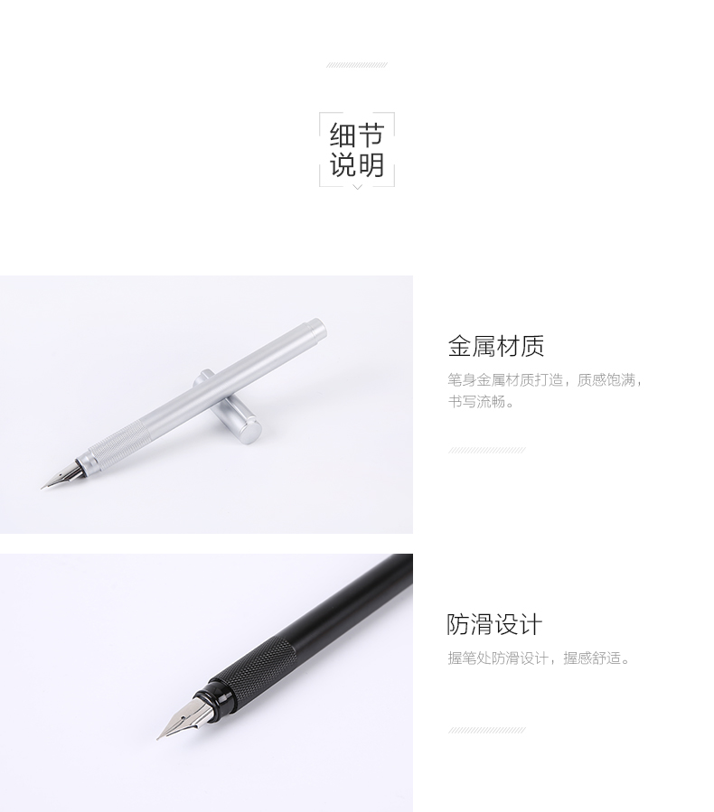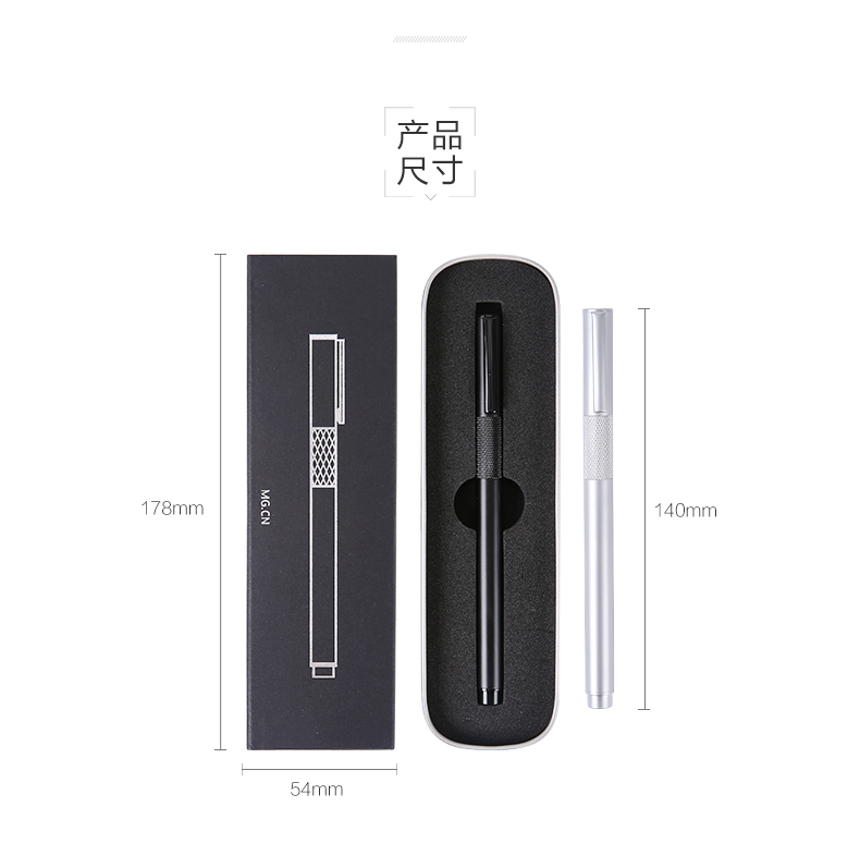 金属笔头,出墨顺畅。经典黑银色笔身,大气典雅