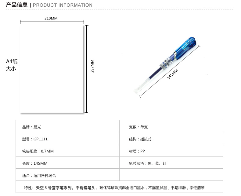 >> 晨光GP1111 天空5号加粗中性笔签字笔0.7mm