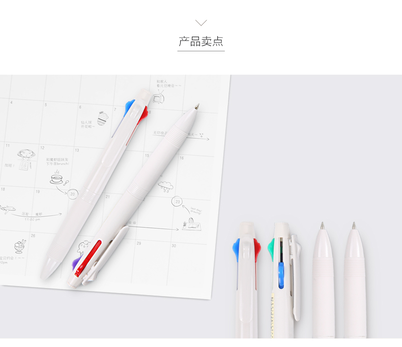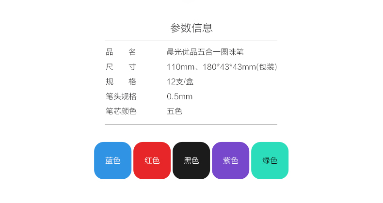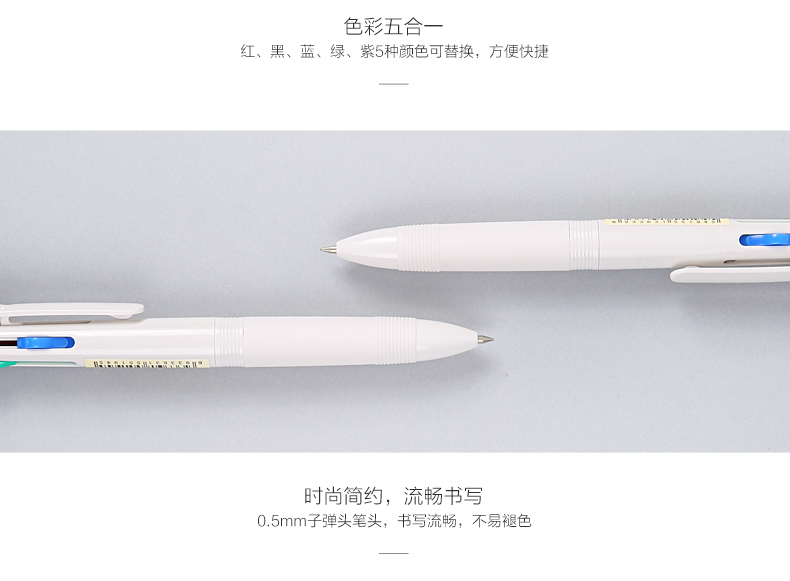 笔芯颜色:红、黑、蓝、绿、紫五合一