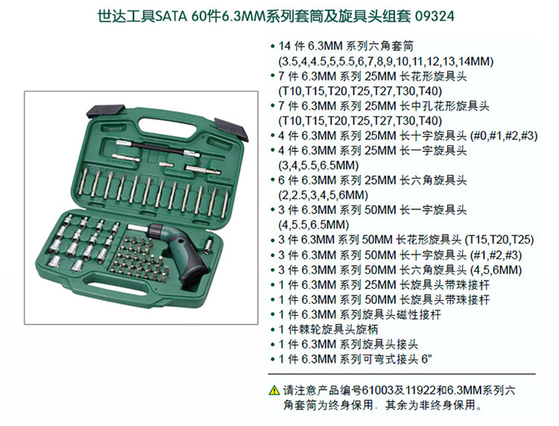 | 世达工具(SATA)旋具头组合套装一字十字花形六角螺丝批组合螺丝刀套装/09324 |