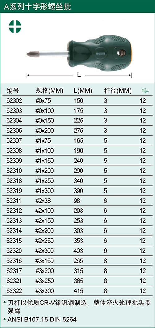 | 世达(SATA) 十字型塑柄螺丝批 62302-62322 |