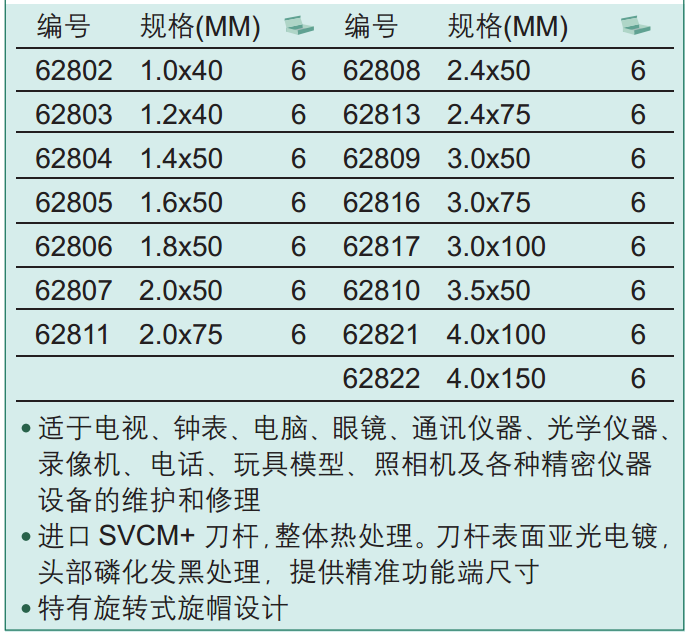 产品名称 一字微型塑柄螺丝批 62802-62822