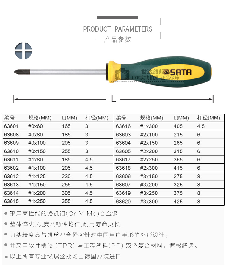 | 世达(SATA)G系列双色柄十字形螺丝批 63601-63620 | |||