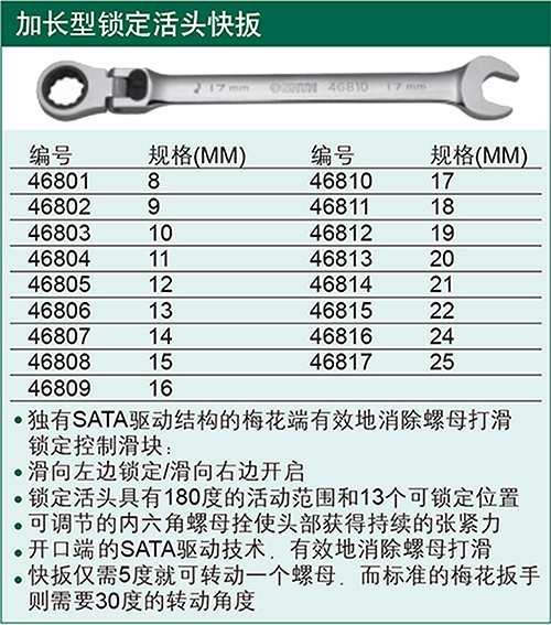| 世达(SATA) 加长型锁定活头快板 46801-46817 |