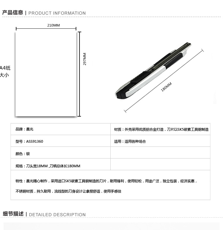 | 晨光ASS91359/1360 小号9mm/大号18mm美工刀 |