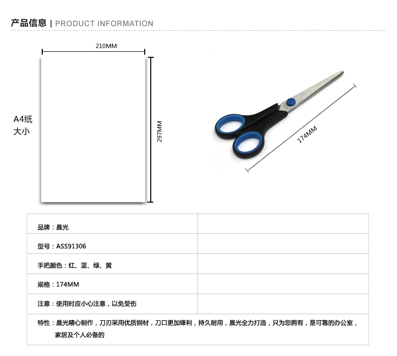 | 晨光ASS91306 办公剪刀人机工程学设计174mm |