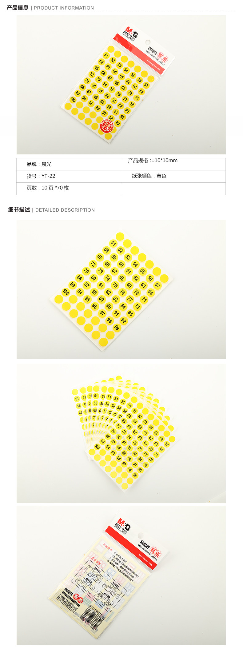| 晨光YT-22 标签纸 圆形纸 小写数字51-100 不干胶贴纸 |