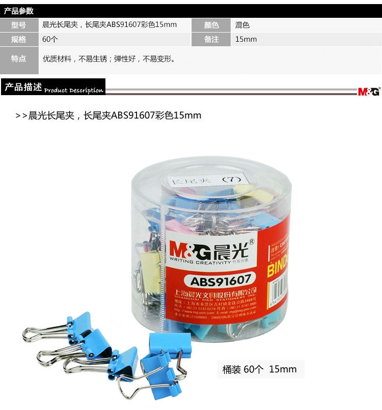 晨光文具 长尾夹 燕尾夹ABS91607彩色夹子15mm金属夹 画夹子 |