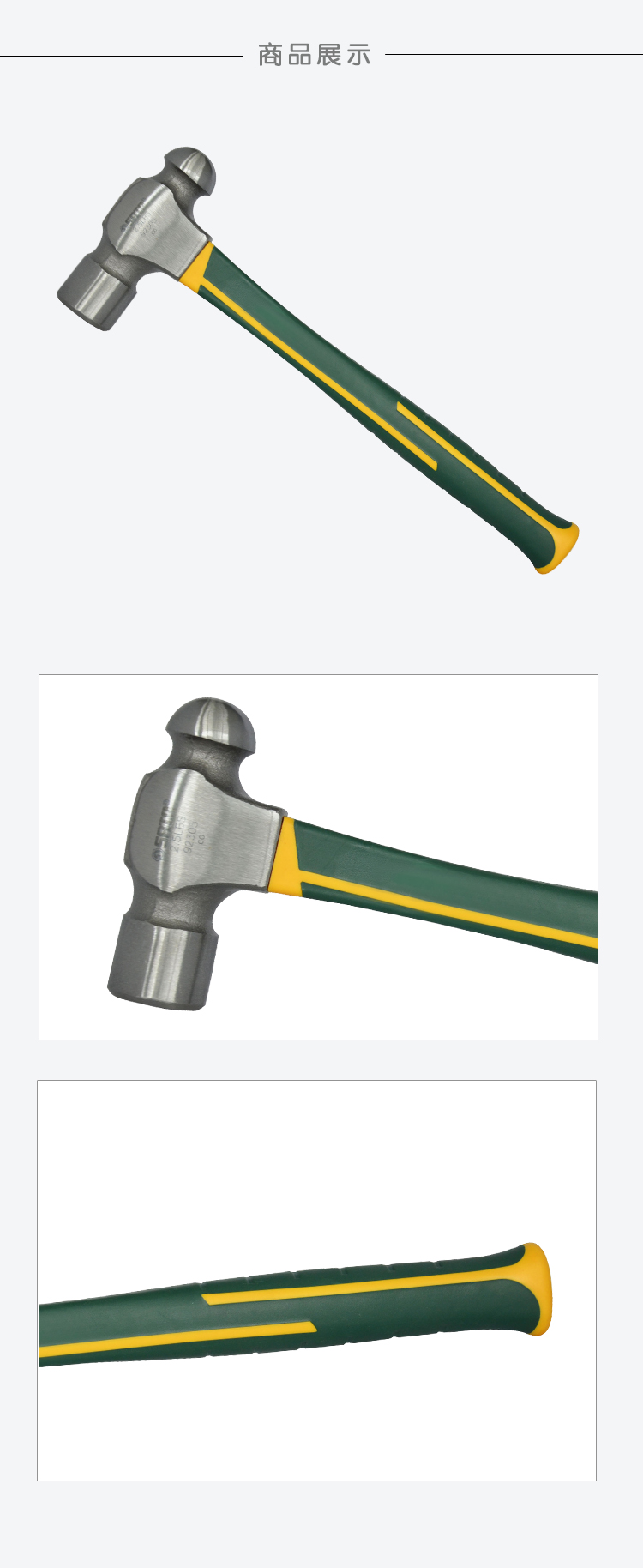 锤头采用高碳钢制作.强力耐冲击; 玻璃纤维手柄.手感韧性佳; 特殊嵌入工艺处理.锤头不易脱落 |