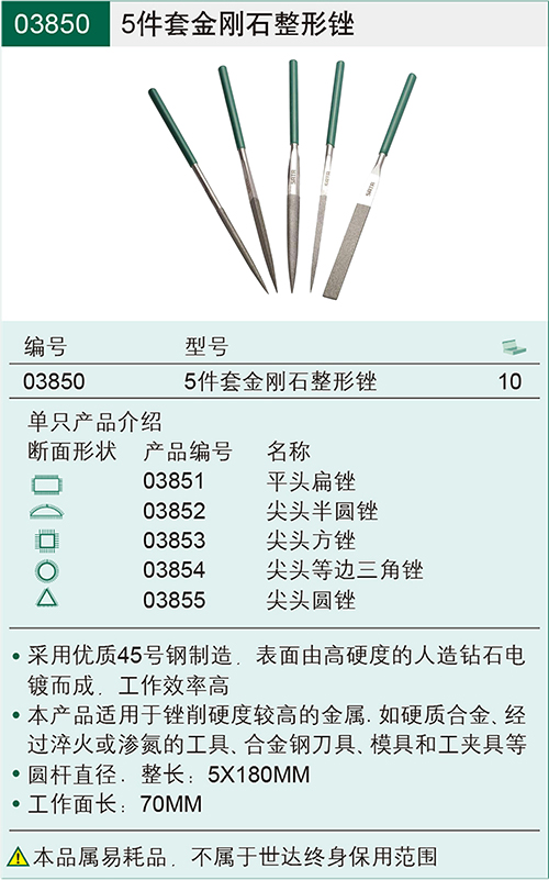 产品名称 5件套金刚石整型锉 03850