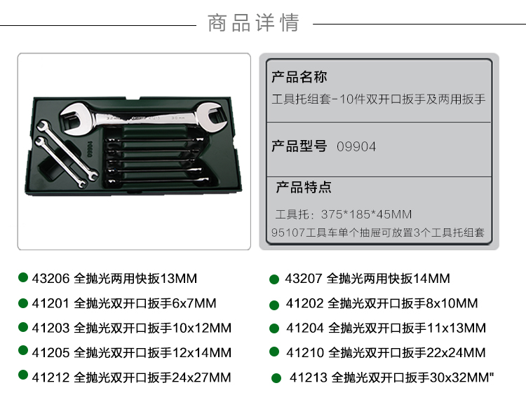 >> 世达工具(SATA)托套装-10件双开口扳手及两用扳手09904