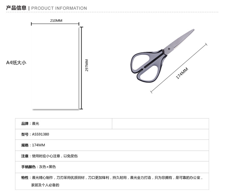 | 晨光ASS91380 双色防滑办公剪刀174mm |