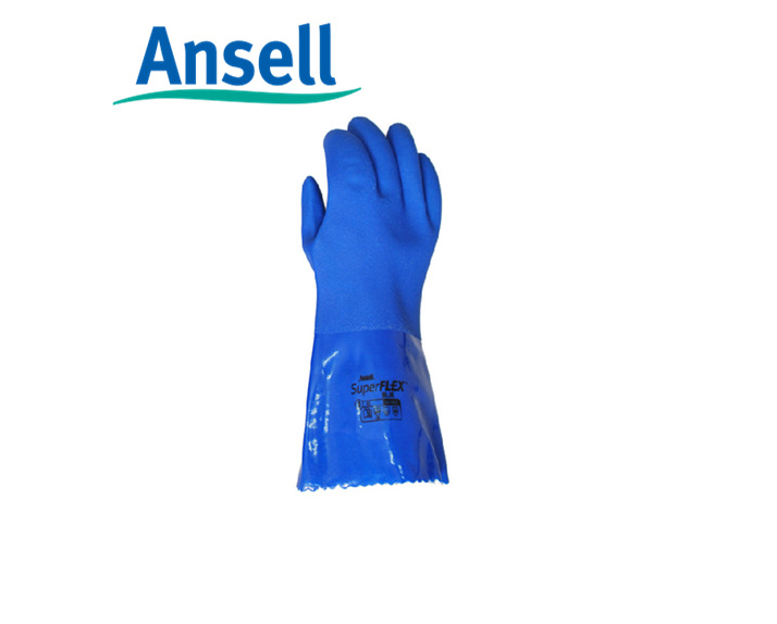高级的蓝色PVC手套,提供优异的抗化学性能和耐磨性,对油、酸、苛性碱和醇类与优异防护性能。内织棉衬,粗糙表面提高抓握性,灵活舒适。 |