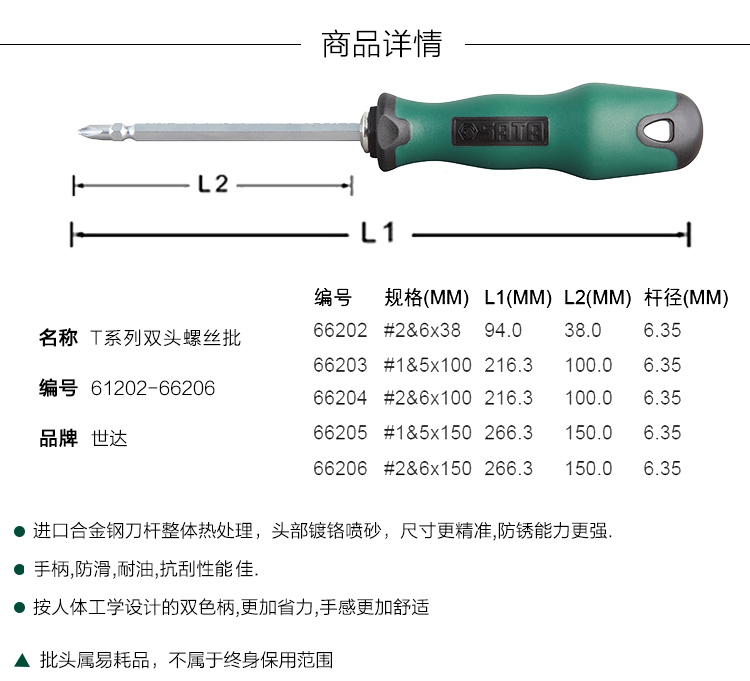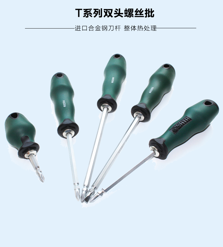 >> 世达手动工具(SATA)螺丝刀 T系列十字形螺丝批一字型起子双头螺丝批单支/66202-66206