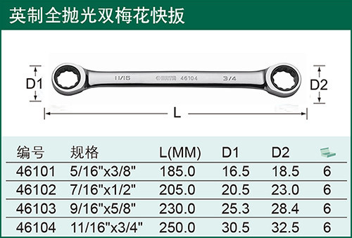 产品名称 英制全抛光双梅花棘轮扳手 46101-46104
