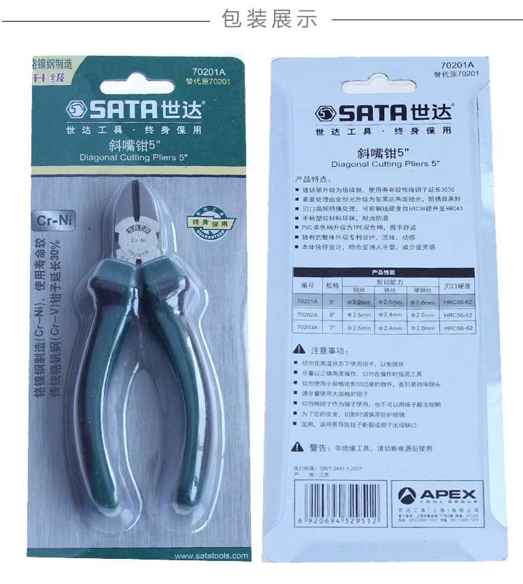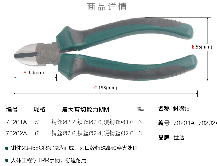 >> 世达工具(SATA)斜口钳5寸斜嘴钳6寸偏口钳偏嘴钳子压线钳斜口剪钳70201A5寸 70202A 6寸
