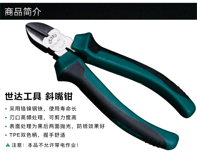 | 世达工具(SATA) 斜嘴钳7寸 斜咀钳子电工工具小钳子电工迷你尖口 /70203A |