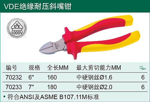>> 世达工具(SATA)VDE绝缘耐压斜嘴钳 偏口钳 斜嘴钳子 70232 6寸 70233 7寸