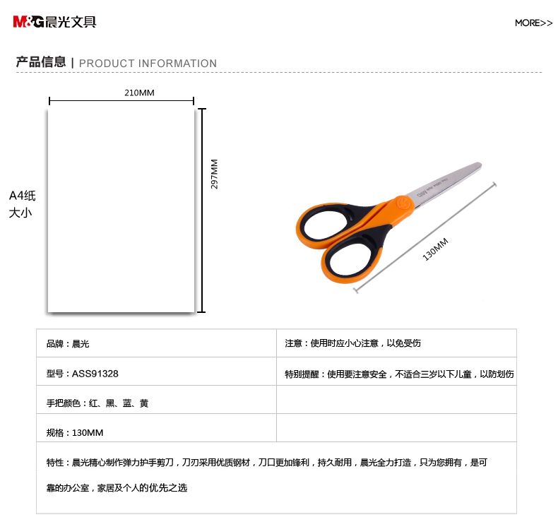 | 剪刀ASS91383 弹力护手剪刀130mm(原91328) |