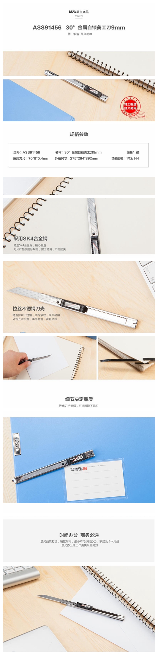 | 晨光ASS91456 30°金属自锁美工刀9mm |