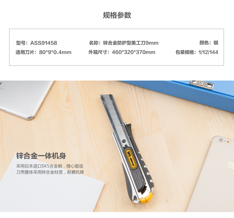 | 晨光ASS91457 铝合金防护型美工刀9mm |