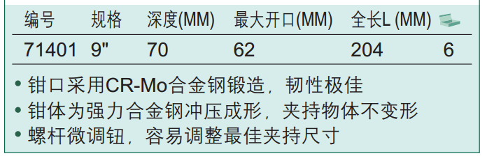3、钳口采用合金钢锻造,韧性佳,坚固耐用