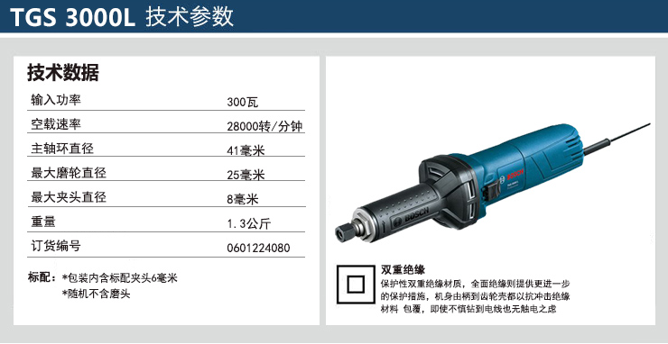 | 博世BoschTGS3000L直磨机T系列磨具电磨300瓦601224080 | |||
