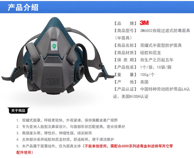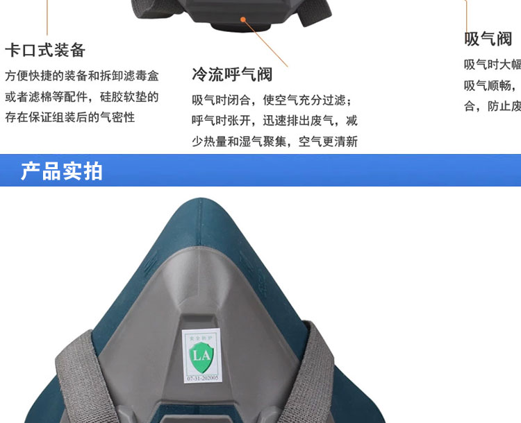 与滤毒盒滤棉配合使用,有效防护有毒气体和粉尘等