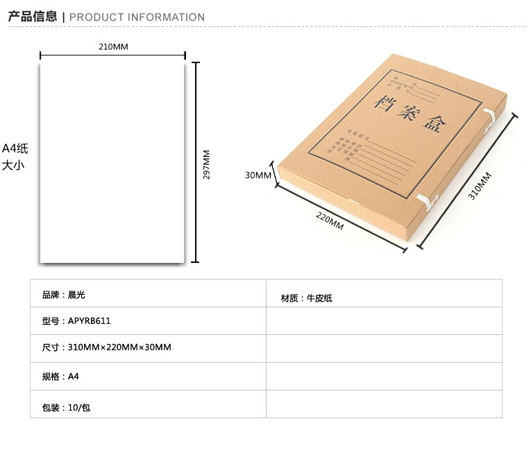 | 晨光APYRB611 A4牛皮纸档案盒30mm背宽 |