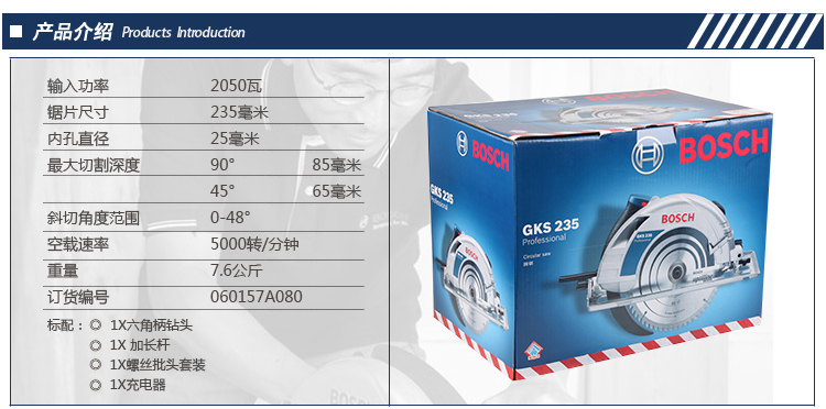 | 博世BOSCH电圆锯GKS235木工手提切割机235mm(60157A080) | |||