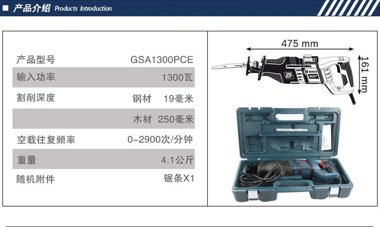| 博世(BOSCH)GSA1300PCE 马刀锯(往复锯)/车体切割拆除锯/钢材/木材切割锯(60164E284) | |||