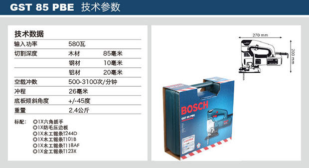 | 博世(BOSCH) GST 85 PBE 曲线锯 (601587643) | |||