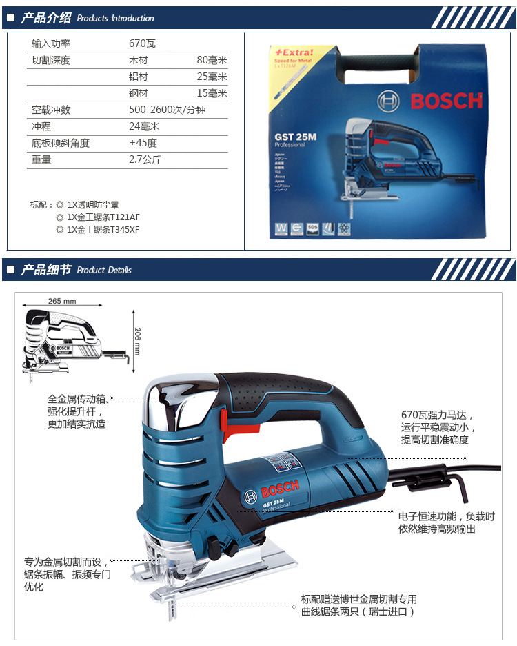 | 博世BOSCH曲线锯 金属切割工具GST25M (601516080) | |||