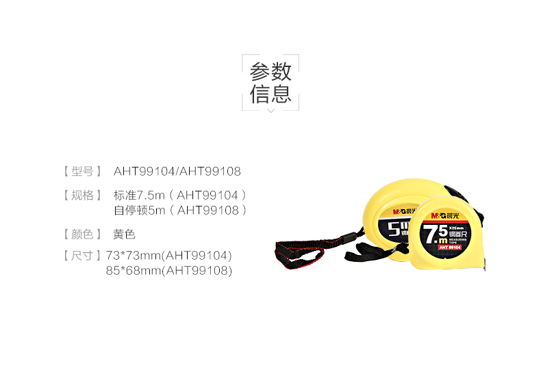 | 晨光AHT99104/AHT99108 标准7.5m/自停顿5m钢卷尺 | |||