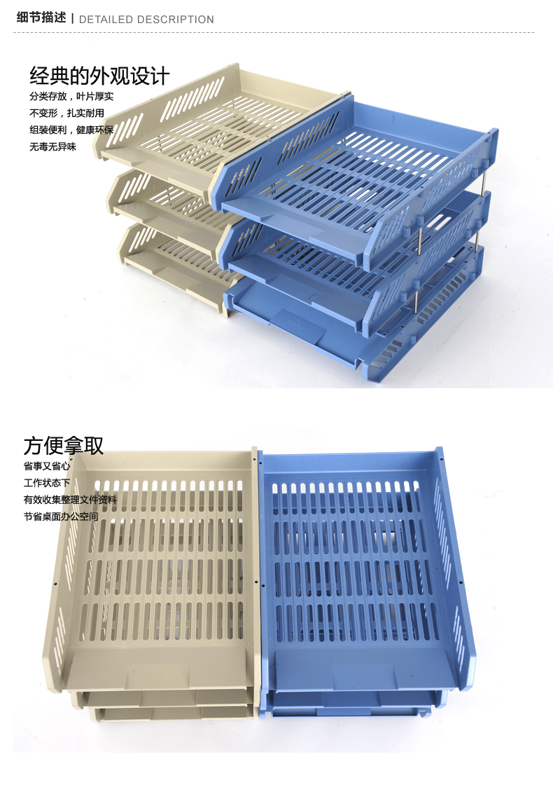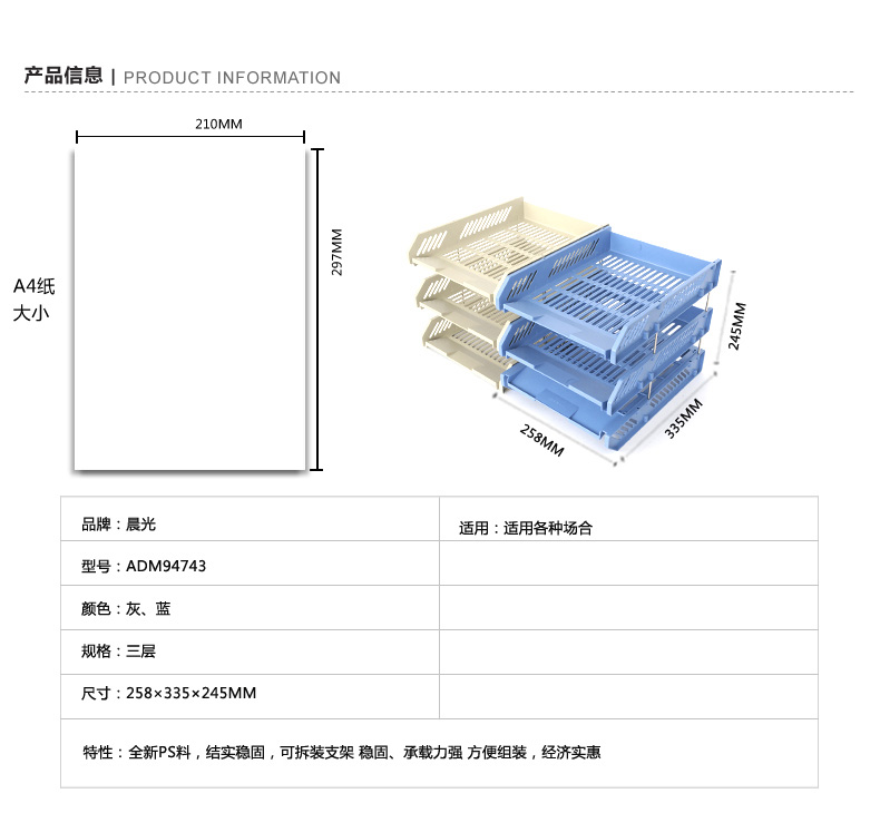 | 晨光ADM94743A/B 三层文件盘塑料文件篮灰蓝 |