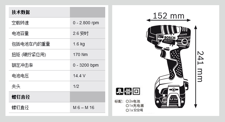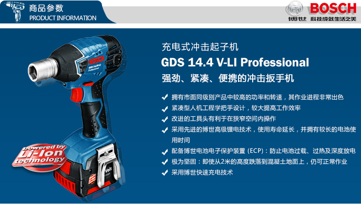 | 博世(BOSCH)电动工具 GDS14.4V-Li 14.4V锂电充电式电动冲击扳手 电动扳手(6019A1T80) | |||