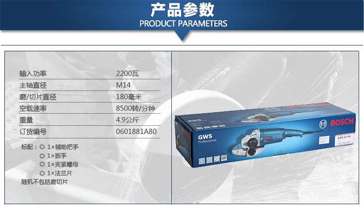 | 博世(BOSCH) 角磨机切割打磨GWS22-180角向磨光机(601881A80) | |||