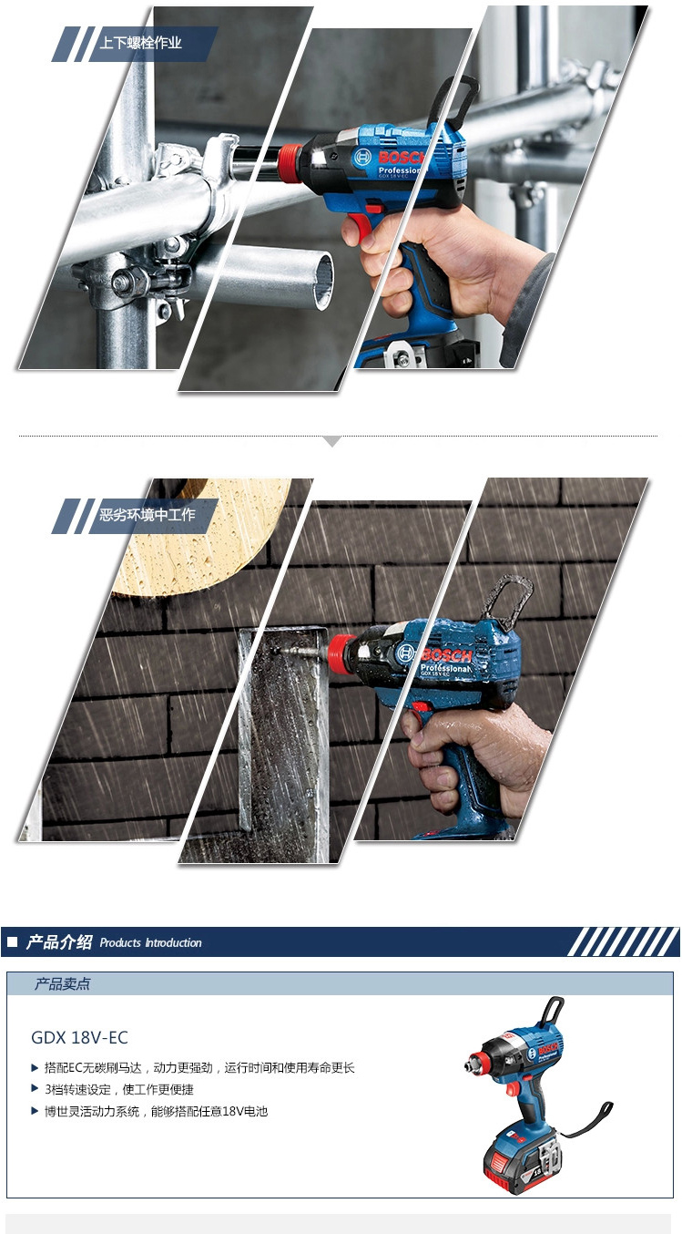 | BOSCH博世电动工具 18V双锂电充电式两用冲击起子机扳手机/正反转无级调速 GDX18V-EC(6019B9180) | |||