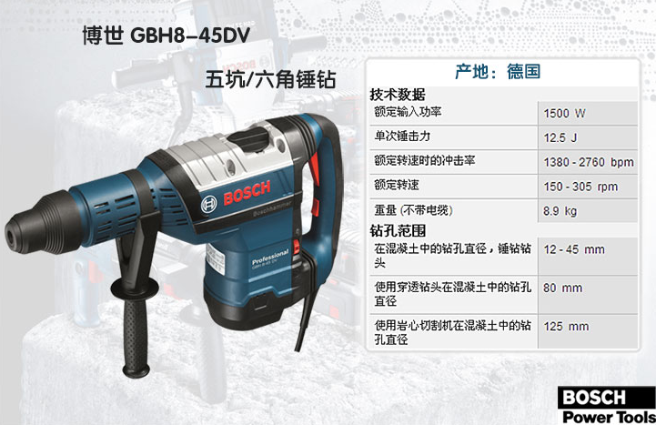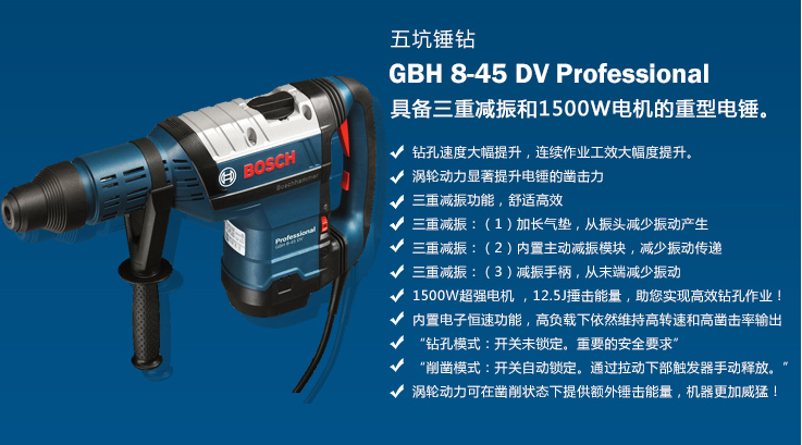| 博世(BOSCH)GBH8-45DV五坑多功能电锤/锤钻(611265080) | |||