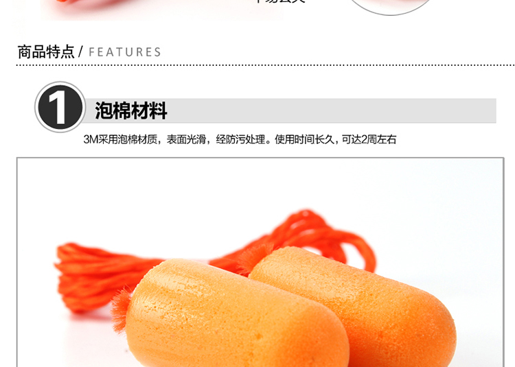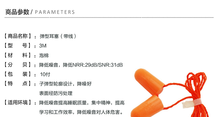 >> 3M 带绳耳塞 抗噪 防噪音 睡眠隔音耳塞降噪消音静音 学习工作睡觉耳塞1110